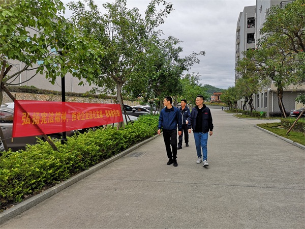 在厂区内悬挂宪法宣传标语横幅